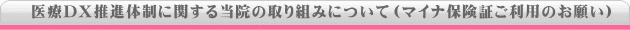 | 正確な情報に基づいた安全な歯科医療をご提供するため、ご来院の際はマイナ保険証のご利用にご協力をお願いいたします。 |